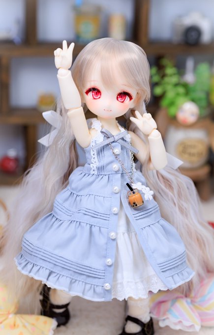 念願叶ってれにゃっこTinyちゃんお迎えしました……😳❓ 信じられなかったけどようやく実感が湧いてきました😳✨✨ いたずら好きそうな元気なおちびちゃん! 早速着てもらったピンタックワンピも似合ってる😭 もう全てがかわいすぎる😭😭😭🙏✨✨✨ #れにゃっ子 #TOAClaris