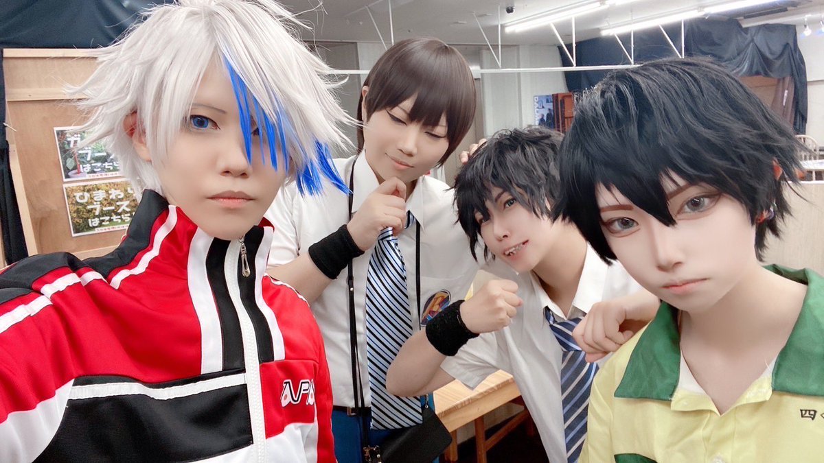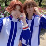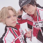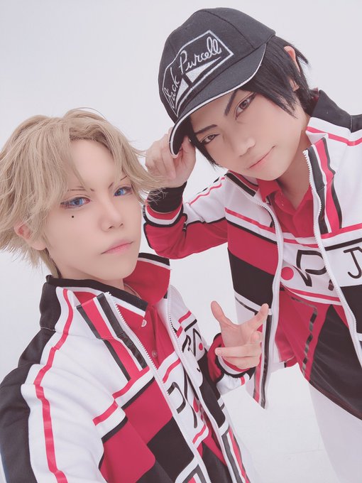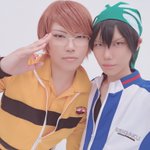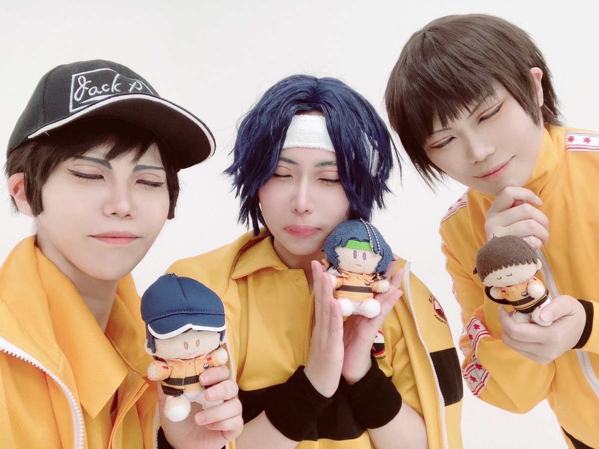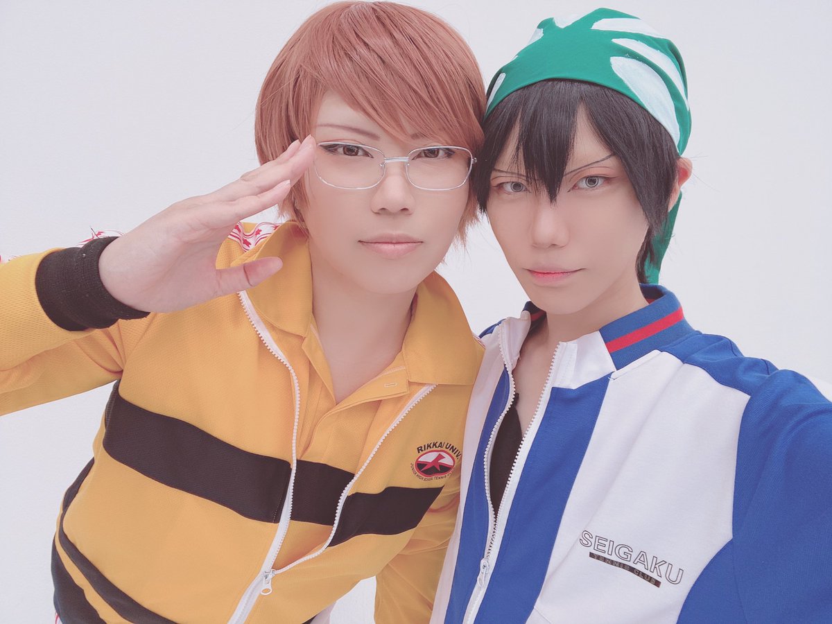 蓮二の真似をする幸村・真田との三強写メ😌 美しくも強い幸村と、愛と厳しさを兼ね揃えた蓮二とご一緒できてとても幸せなひとときでした😉 幸村:つっきー 蓮二:いろりろりろりろりり #ハコアム大阪オフ会