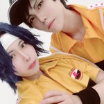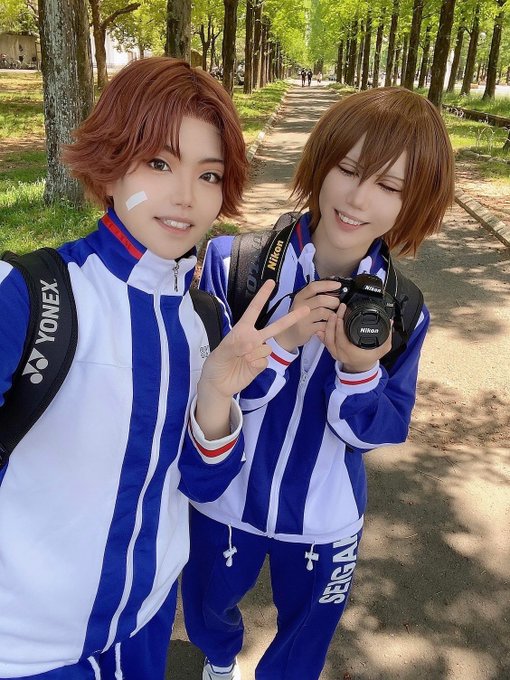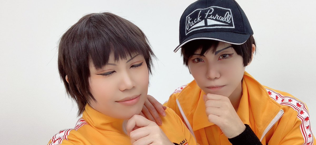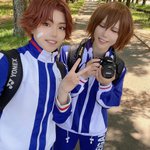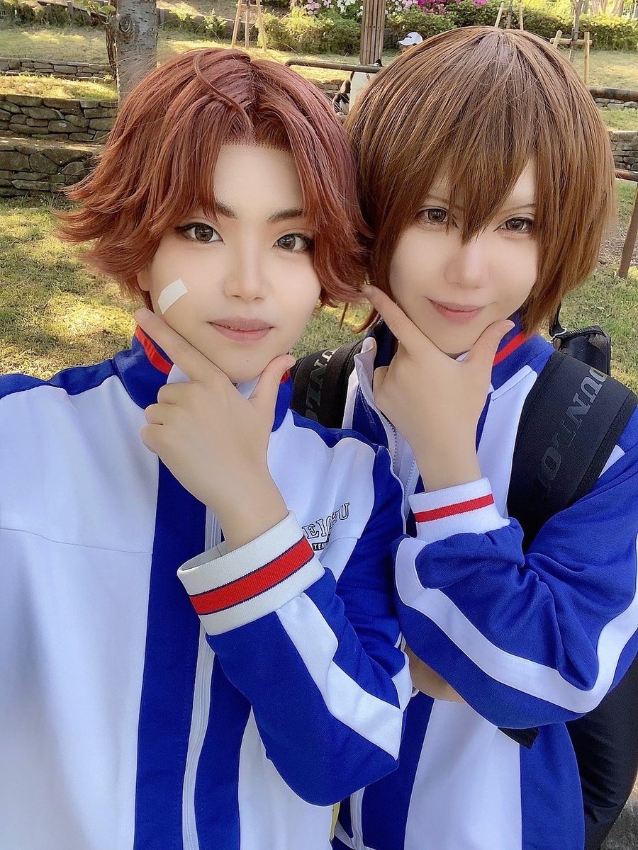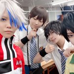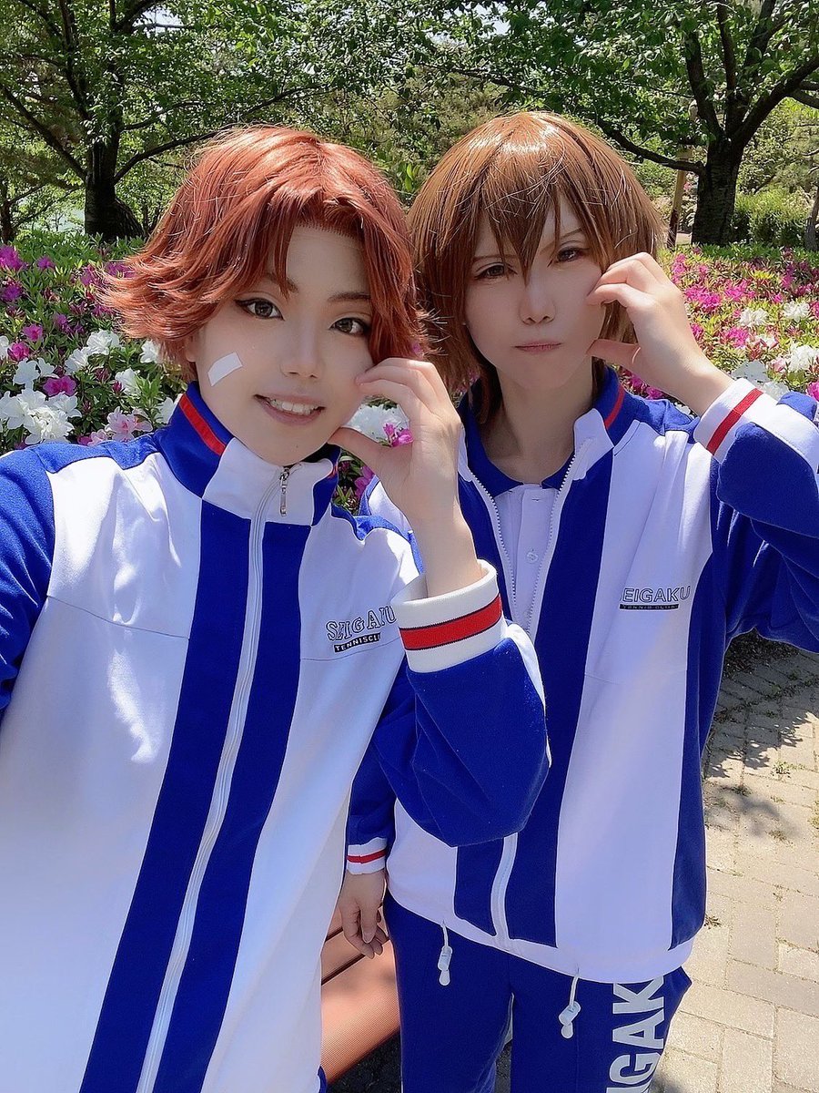 蓮二の真似をする幸村・真田との三強写メ😌 美しくも強い幸村と、愛と厳しさを兼ね揃えた蓮二とご一緒できてとても幸せなひとときでした😉 幸村:つっきー 蓮二:いろりろりろりろりり #ハコアム大阪オフ会