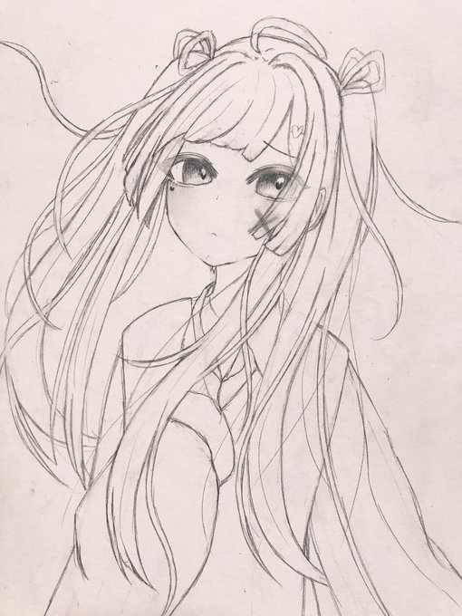 途中経過めちゃかわいい リクエストのハーフアップです! (サイドハーフアップになった) 服のデザインは変わる予定 #絵柄が好みって人にフォローされたい #絵描きさんと繋がりたい #アナログイラスト