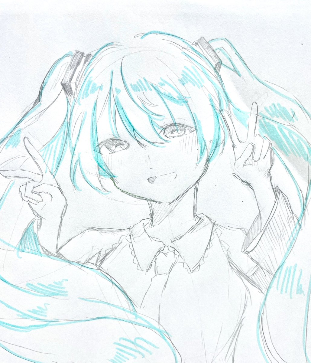 ミクちゃん描くのわりとむずいな( ˇωˇ ) #イラスト #イラスト好きさんと繋がりたい #初音ミク