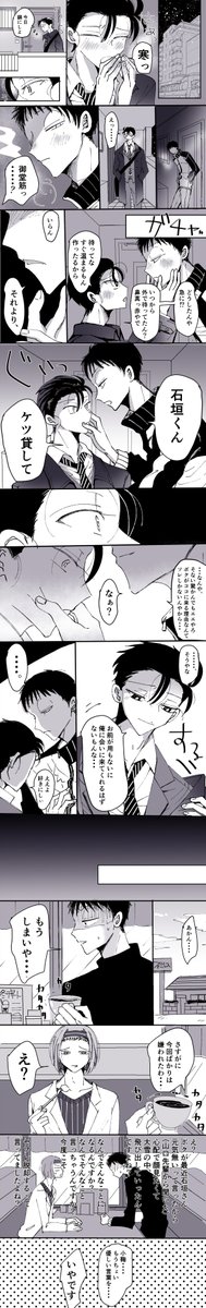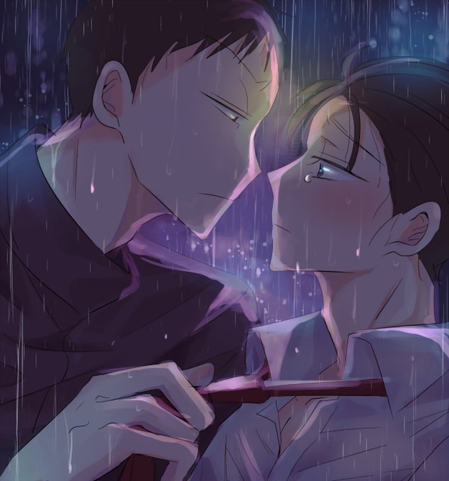 昔描いたこ↑れ↓の続きみたいな絵です (両片思いの癖に)セフレ状態の関係が辛くて逃げだした石垣くんを雨の中追いかけ回す御堂筋くんさん…☂️