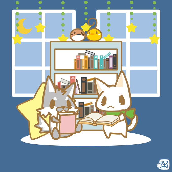 #いちにちいちもふもふ #もふもふ #イラスト もふもふさんの、のんびり読書な休日ライフ📚