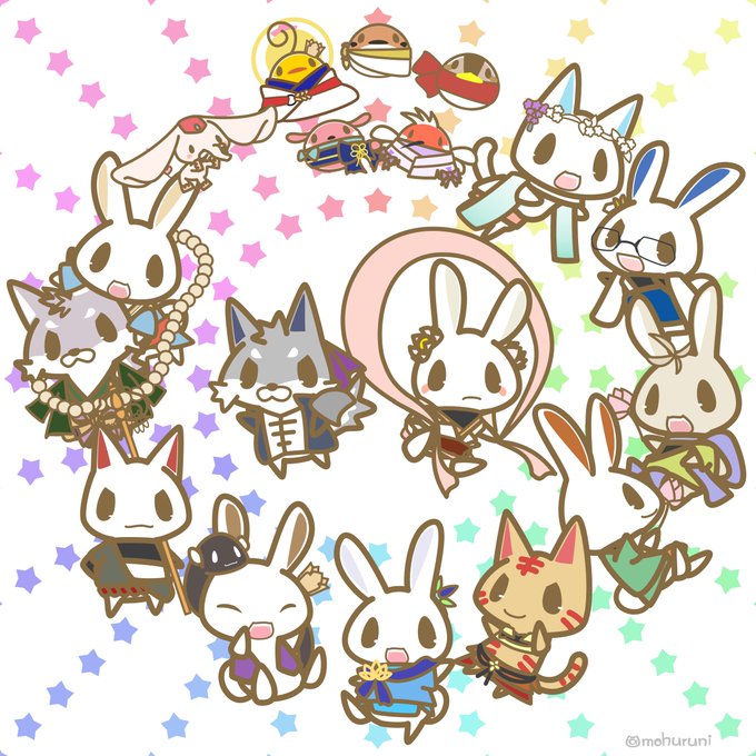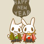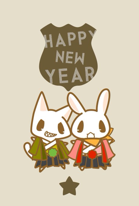 8 18 描き初めです🎍 うさぎさんとねこさんの年賀状風~✨ 袴でビシッとキメてます! 23/01/01 19:06