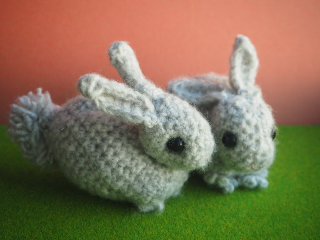 子うさぎ2羽 足指を少し小さくしてみました。 うさぎ年に間に合うどころか、うさぎ牧場が形成されています。 #あみぐるみ #うさぎ