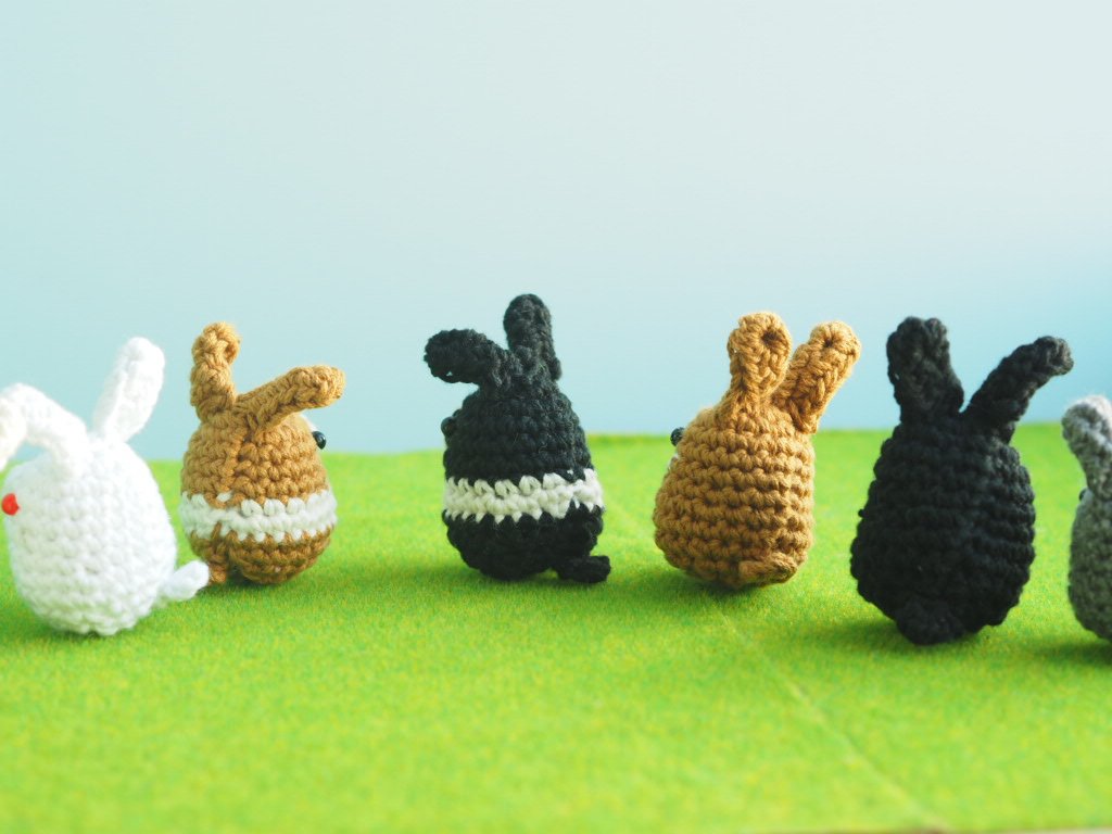 うさぎみんなに足がついたよ #あみぐるみ