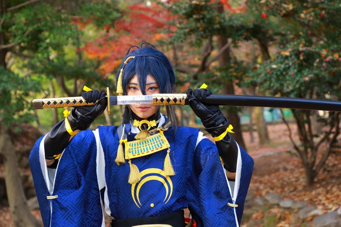*cos/刀剣乱舞/三日月宗近 撮影ありがとうございます☺️ 紅葉撮影出来て嬉しい〜!🍁 📸:あん さん(@ann6477) #公会堂
