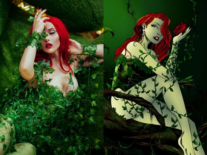 #cosplayvscharacter 🌹🌹🌹 Решила, что нужно почтить обеих талантливых фотографов @AsterShade(первое фото) и @TreeMasala(второе фото) и сделала два коллажа 💖🌹 #poisonivy #dc #cosplay