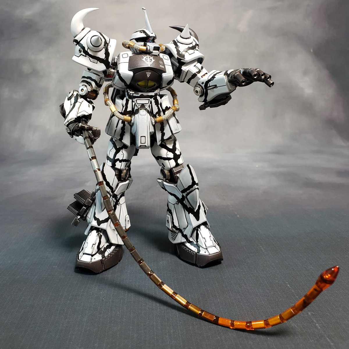 エコプラ・グフと旧キットド・ダイYS 無線LEDで電飾、冬季迷彩 #ガンプラはどんな自由な発想で作ってもいいんだ #ガンプラ #ガンプラの画像貼るとRTされると聞いて #ザクハラ #旧キット #エコプラ