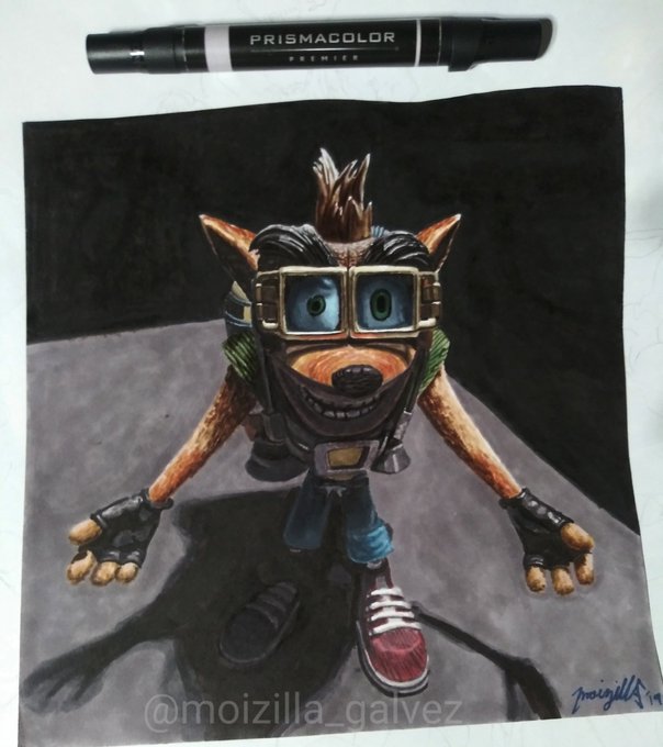 Crash bandicoot marker drawing. #drawing #inktober #inktober2019 #crashdandicoot #crashforsmash #prismacolor #neca