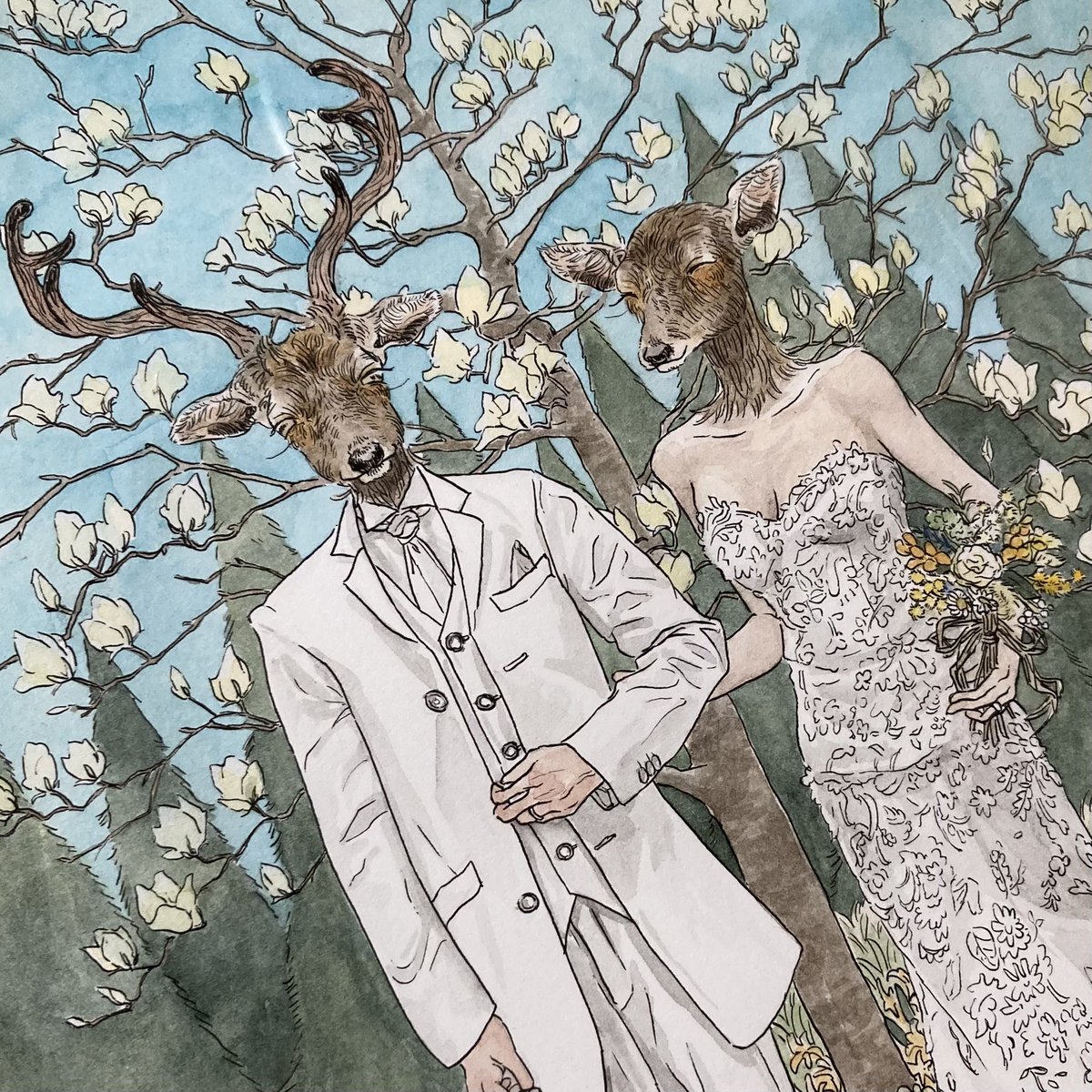 ご依頼で結婚式のウェルカムボードを描かせていただきました!末永くお幸せに💐