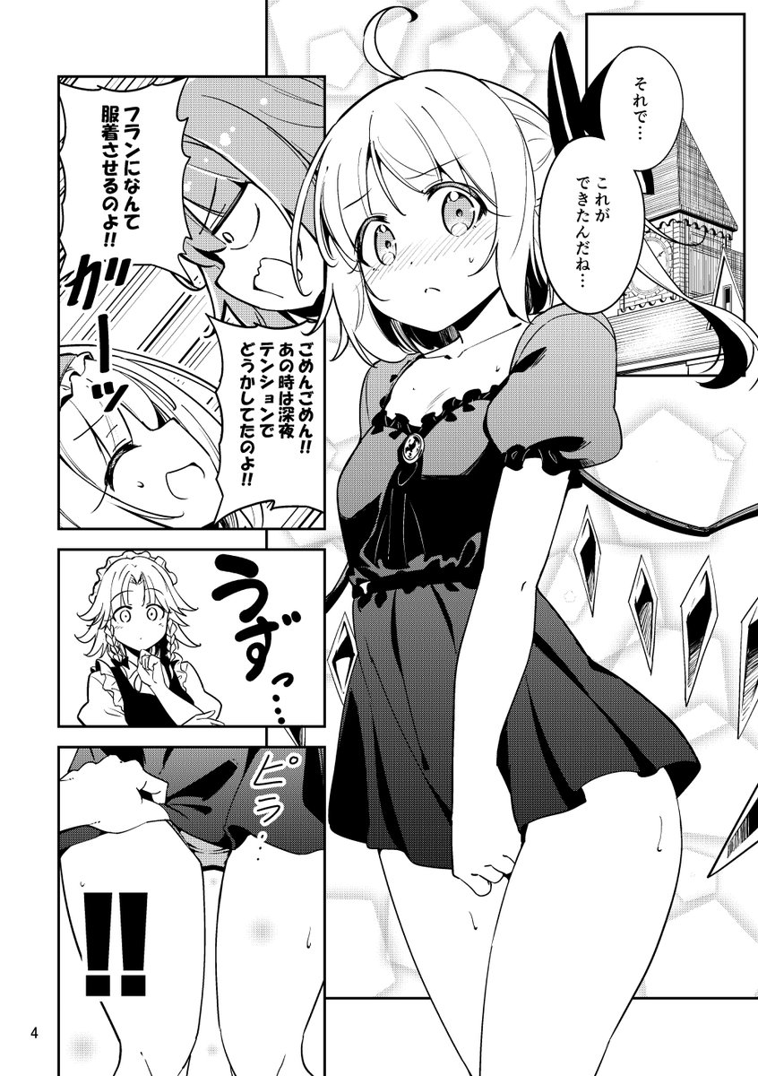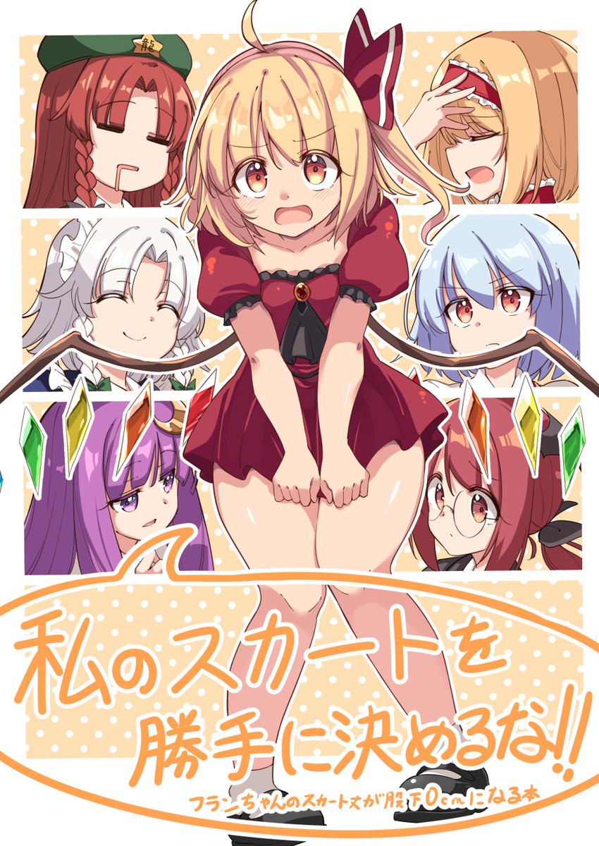 例大祭新刊の宣伝です! 「私のスカートを勝手に決めるな!!」 A5 28p 500円 フランの股下0cmスカートドレスを巡って、紅魔館メンバーが、フランそっちのけで対立する話です メロンさんに委託してます! melonbooks.co.jp/detail/detail.… え26b「ぼるぼっくす」でおまちしてます! ツリーにサンプルあります