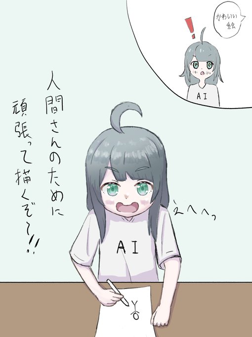#イラスト 最近お絵描きAIが流行ってるのでなんとなーく落書きした擬人化AIちゃん