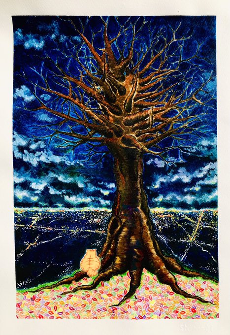 #thisisgallery さんのキャンペーンに参加させていただきます 秘密のすみか2 縦30cm横45cm厚さ0.3cm thisisgallery.com/product/56652 #水彩画 #点描 #thisisgalleryリツイートキャンペーン #アート