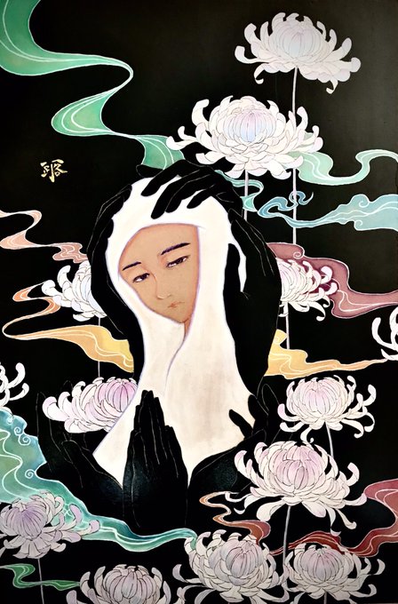 千日回峰行や四無行のお話を聞いてどうしても描きたくなりました。 飲まず食わず、眠る事もなく拝み続けた人はどんな世界を見たのだろうと思いました。 私には拝む姿はもはや人を超えた何かに感じられました。 ぜひ近くで見て頂きたい作品です。 #水彩画 #神秘的 #thisisgalally