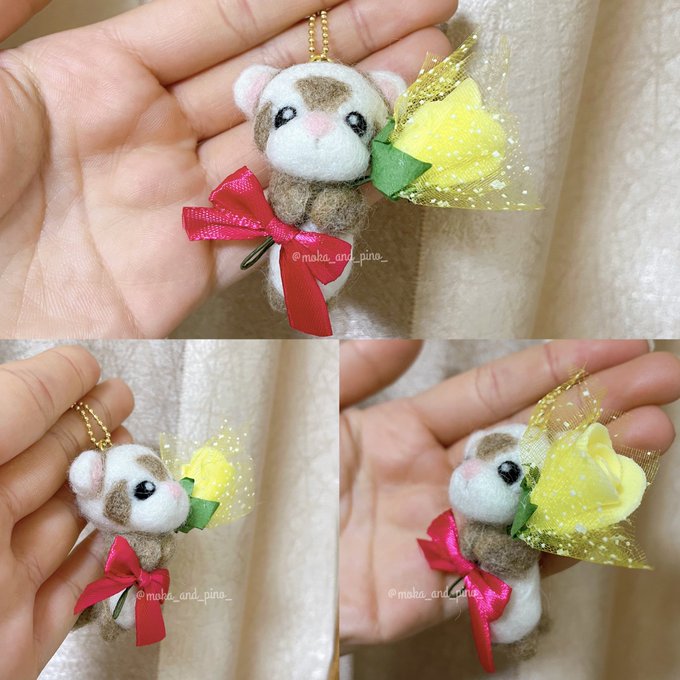 羊毛フェルトで作ったアルビノちゃん(おめめが黒い子ver)完成しました💐✨ 有償ではありますが、お迎えして下さる方いらっしゃいましたらDMでもリプでも下さると嬉しいです🫶💓 #フェレット #アルビノ #羊毛フェルト