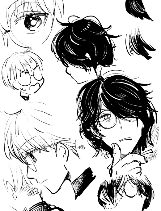 9 86 漫画どんな絵で描こうかなのらくがき 探偵組、モノクロにしたときのバランスが良いな~ 21/05/06 23:10