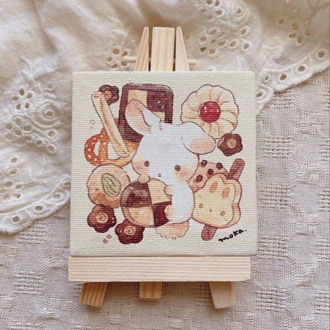 新しいグッズみてください…!!! ミニキャンバス!木でできたイーゼルも付いてます☺️ 手のひらサイズのキャンバスが個人的にめっちゃツボに入ったグッズです!かわい〜!🍪 明後日の #メルメリィマーケット で販売します!