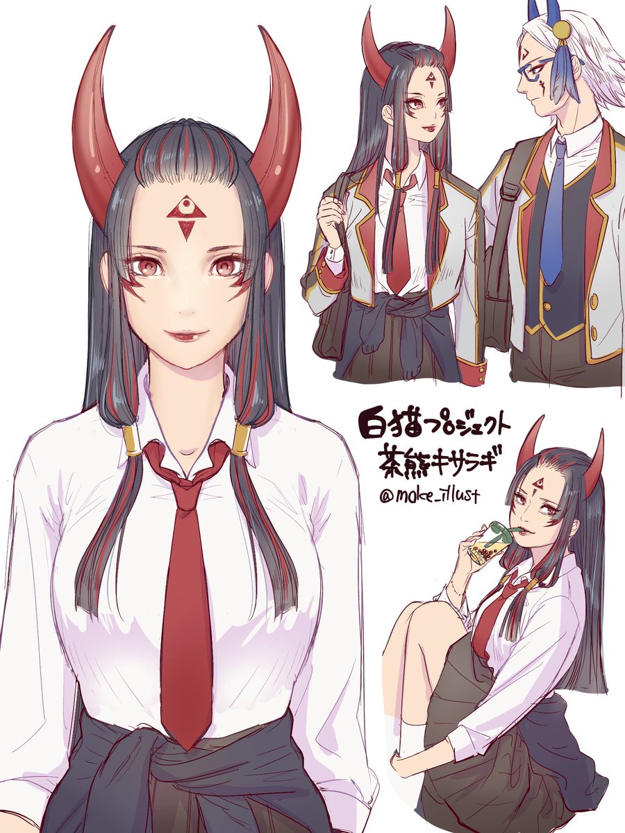 2人が茶熊してた頃本当最高でした。校友会も最高だったよ。たまにはまた学校にも顔だしてー! #白猫お絵描き #白猫プロジェクト #オウガ #シャルロット
