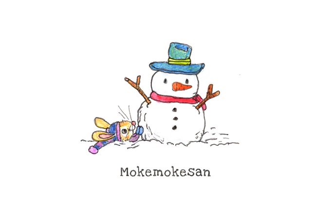 0 7 わーい東京でも初雪。雪だるまを作ったのです。 #moke_mokn_san #初雪 #イラスト #水彩画 #うさぎ #もけもけさん #雪だるま 22/01/07 16:53
