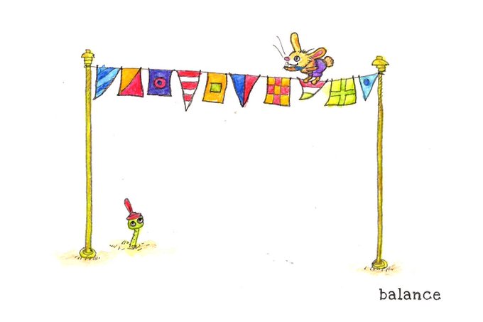バランスが大事なのね。ひだり耳とみぎ耳をひろげて、、おっとっと。 #moke_mokn_san #水彩画 #イラスト #もけもけさん #うさぎ #バランス