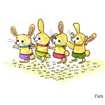 みんなといるととっても楽しいんだ! よし、あっちに行ってみよう。 #moke_mokn_san #もけもけさん #うさぎ #イラスト #水彩画 #癒し #元気が出る #ともだち
