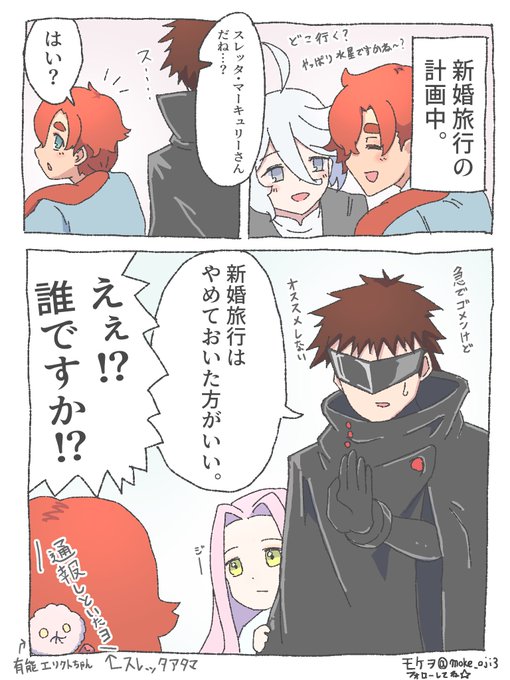 3267 9795 新婚旅行の計画を立てているスレッタとミオリネ、そこに黒ずくめの男がやってきて… #水星の魔女 #水星の魔女25話 23/07/10 16:07