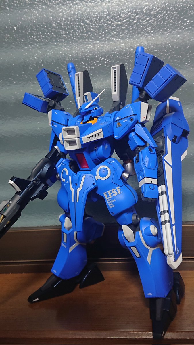 MG ガンダムMk-Ⅴ完成! ラプラス事件後にロンド・ベルに編成された機体という設定です 本体はアクシズに提供された機体をジョン・バウアーが持ってきたもので、武装はエアーズ市から回収したものとして色味を変更しています 修理部品が無いので数度の出撃後に廃棄か標的にされる予定です #ガンプラ