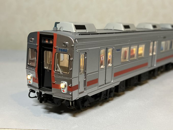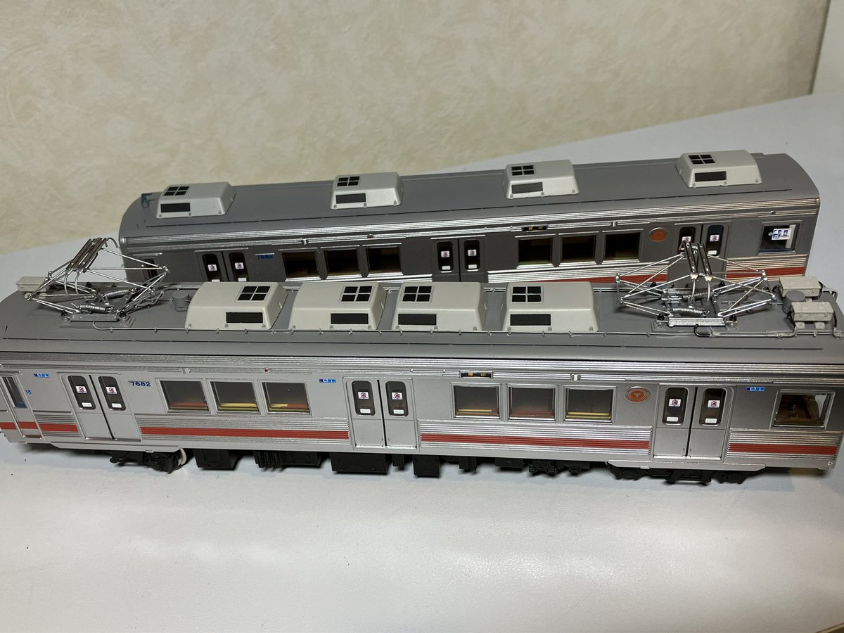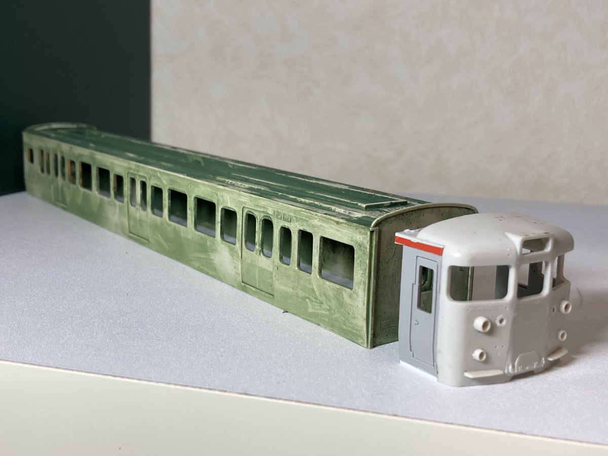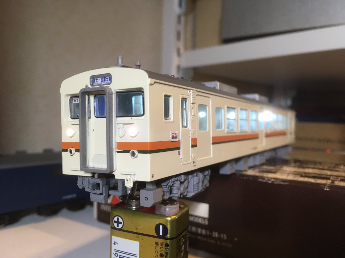 片側の運転台に貫通幌を取り付けて下廻りと合体! ちゃんと動いてライトも点灯して良かった♪ あとはパンタグラフと細かい部品を取り付けるのみです。 #tevolutionモニター #天賞堂 #tenshodo