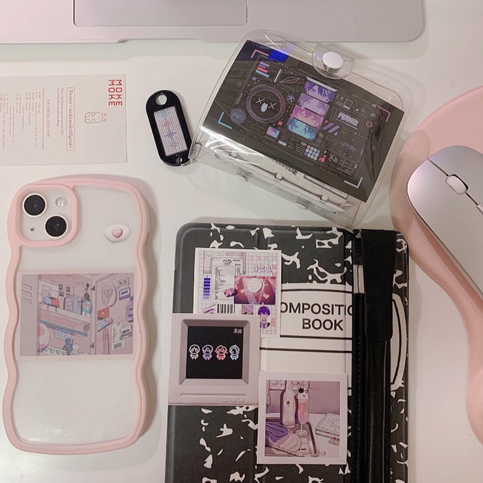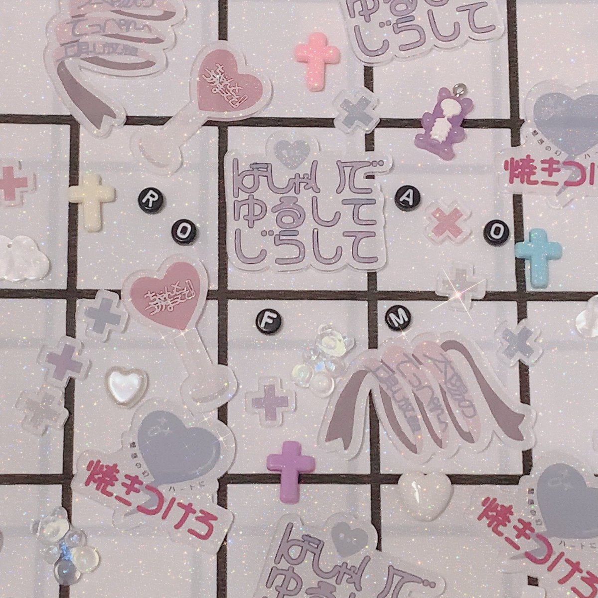 #にじそうさく07 ステッカーいい感じに印刷できた ~ 𖦹 ̫ 𖦹❕アクリルパーツも頒布できるものが作れたので、以前載せたデコケースをこれから量産します🥚 お品書きはまた改めて出すのでよろしくおねがいします ... 🖤