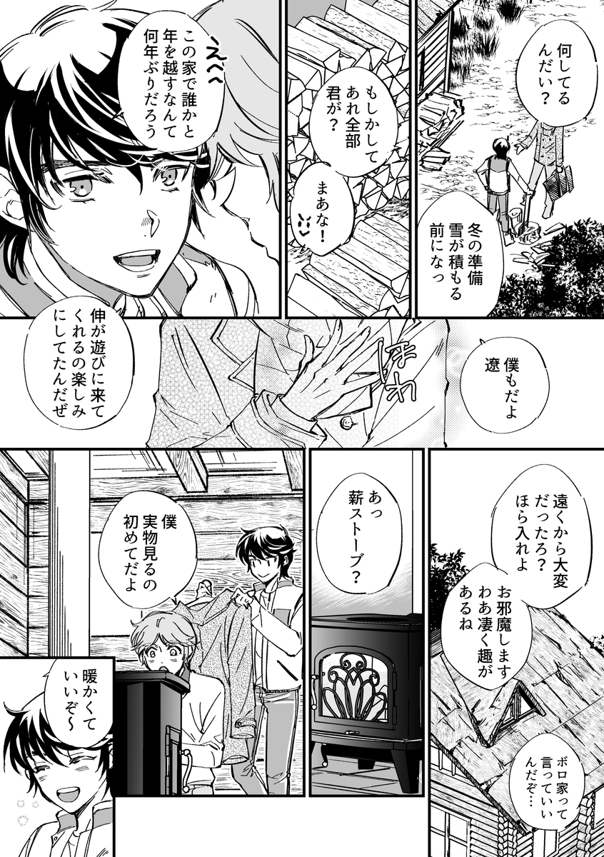 水赤雰囲気漫画。普段より2割増し遼を可愛らしく伸をやさし気に描いてみました…誰だお前。青緑のリターンが貰えるといいな