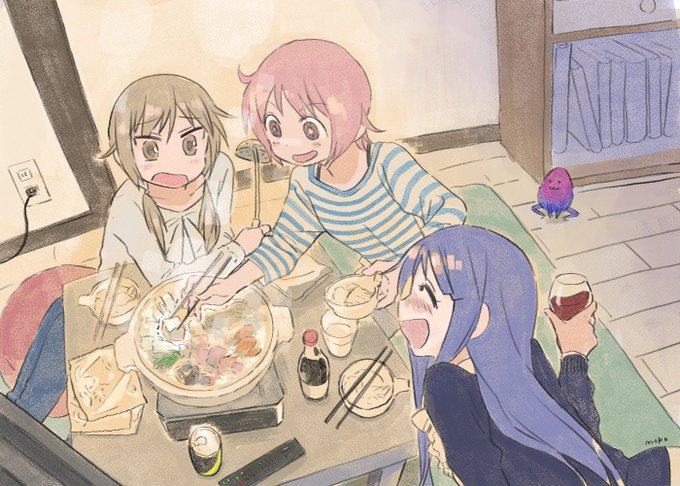 ゆゆ式 Advent Calendar 2018 (adventar.org/calendars/3137) の4日目 です。大学生宅飲み鍋の図。絹ごし豆腐を箸でつまんではいけない(私はつまむ)。 #ゆゆ式