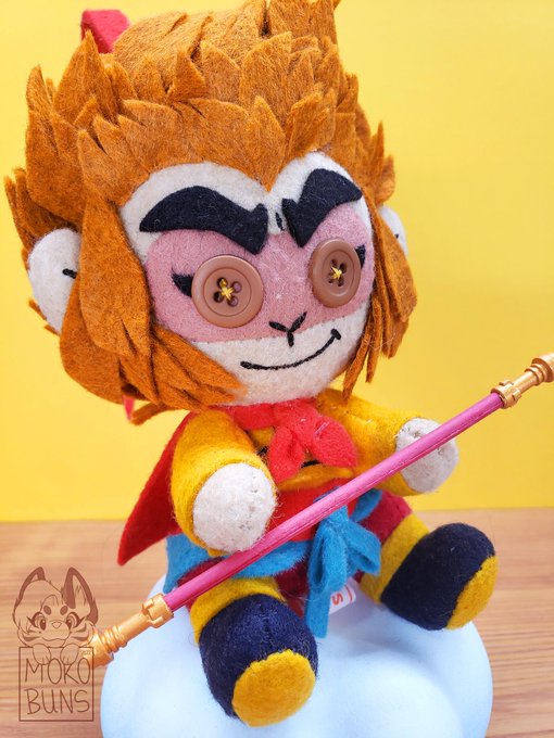 AAHH I got to make a little plush of Wukong the monkey kid!! He comes with a little staff and cloud to ride around on ^^ I'm so happy with how the shape of his hair came out too X3 Thank you skittlelicious_rainbow (on IG) for supporting my work! #LEGOMonkieKid #wukong #plush
