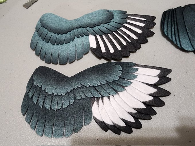 Oh my god, pictures seriously don't capture how pretty this little guy is in person. The wings are fully posable, and the feet are as well! I'm so in love with them and I can't wait for their owner @EzekiellPlays to hold them! #commission #plush #bird #magpie #furry #furryartist