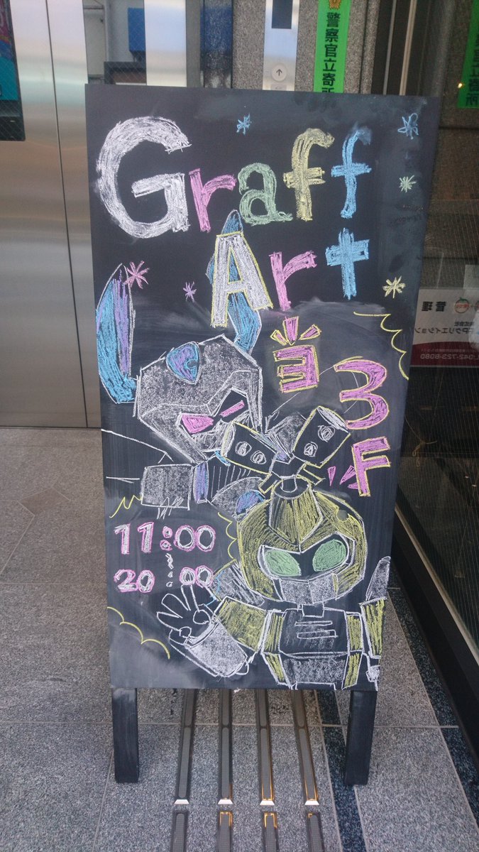 12 22 メダロットのグッズ、早速買ってきた♪ エレベーター手前のチョークアートも可愛い〜(*´∀`) グラフアートさん、メダロットとコラボしてくれて本当にありがとうございます! 18/11/28 12:47