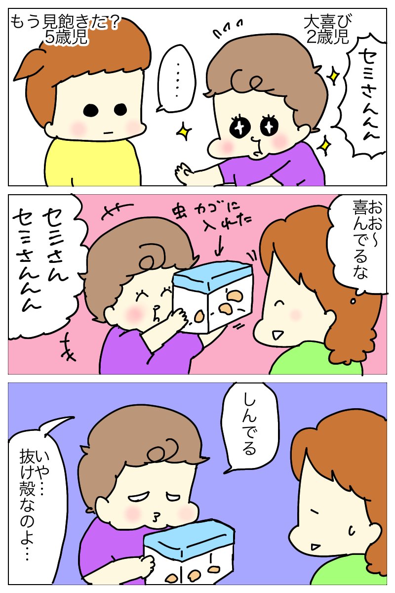 2 15 夏と言えばコレ✨ コレを見つけるのが私の特技なんですが、特に役には立たない😅 #育児漫画 #漫画が読めるハッシュタグ #蝉の抜け殻 せみ 21/07/24 13:02