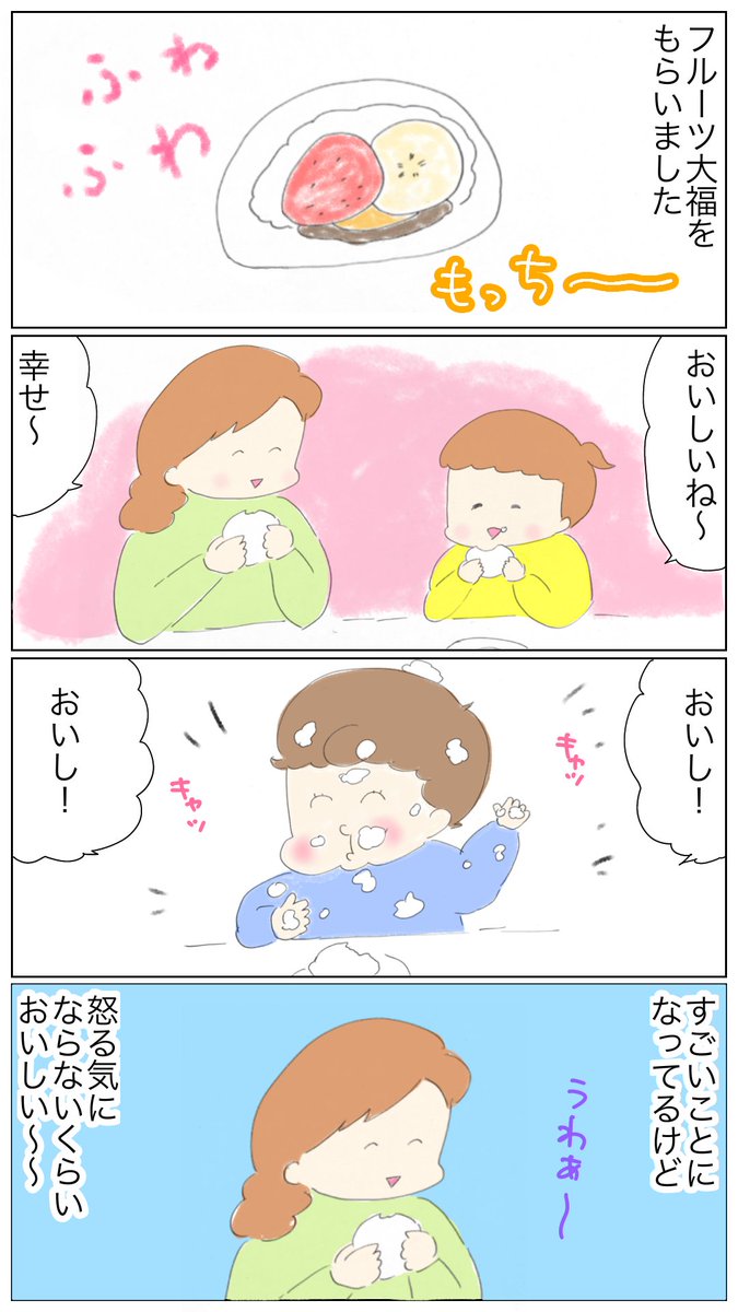 1 23 おいしい物は強い😄 線画をアナログで描いてみました #育児漫画 #育児絵日記 #絵日記 #漫画が読めるハッシュタグ #スイーツ 22/01/19 17:07