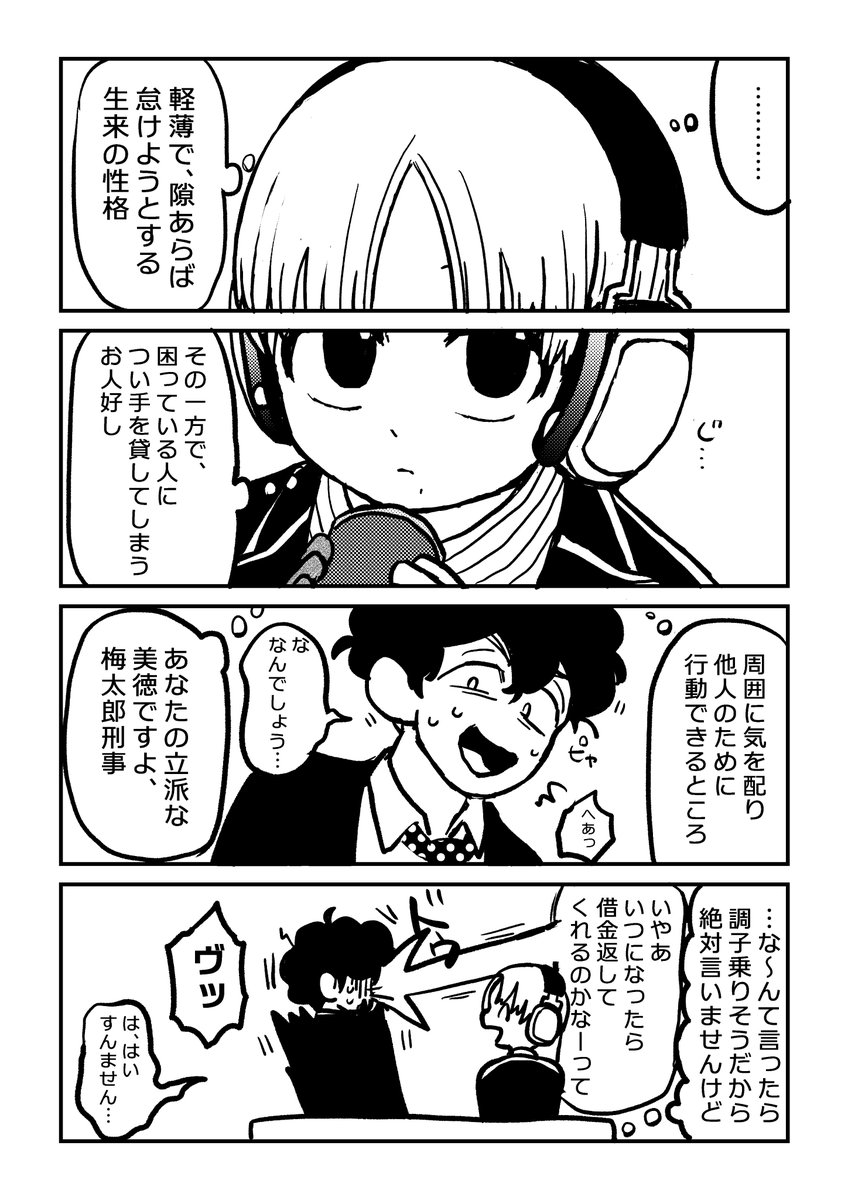 梅ちゃんのお誕生日なので、今回の新刊から梅ちゃんの話をもってきました🎉買いかぶりかもしれないけど、彼のこういうところが好きだって話です あと一人だけ出張土産買ってきた人間くさいところ お誕生日おめでとう!!#松竹梅太郎生誕祭2022