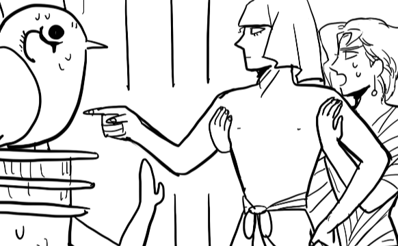 これは昔描いた死後の世界で神に喧嘩を売る古代エジプトの太郎と必死で止める院とドン引きしている冥界の神々