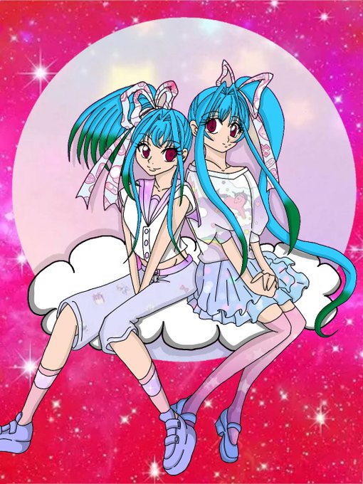 こんにちは、羅玉です(・ω・)ノ 双子ドロイドをモデルにやっと完成、新垢の新アイコン!! ちょっと派手すぎかもですが、こちらが全体イラストです(*´꒳`*) 気にってくれたら嬉しいです(*´`) でも、カラー描いてる時に気づいた。 双子ダンゴムシ忘れてた(;-ω-) #シーエ #羅玉派生イラストモデル