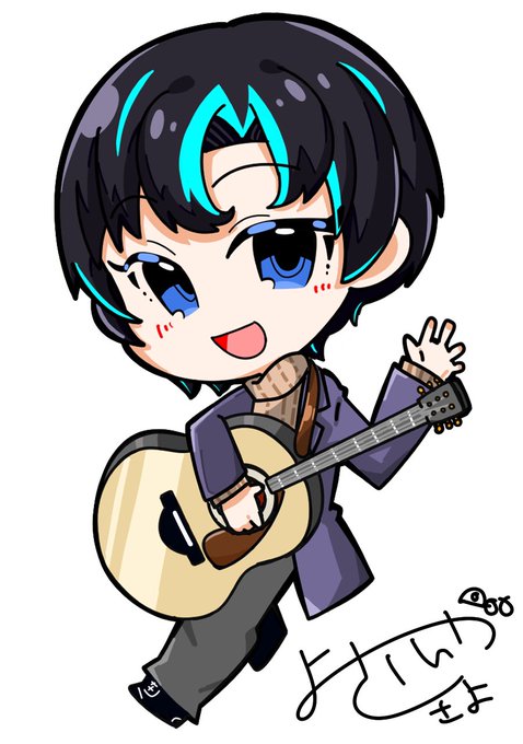 #ねりねんアート お2人目はねりねさん描かせて頂きました!! ギターも弾いて歌も歌うV弾き語りストさん!! 人生で初めてギターちゃんと描きましたわ……!! 改めて参加ありがとうございましたぁ🙌 twitter.com/mokoneko_38/st…