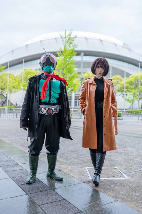 シン・仮面ライダー 本郷猛 / 仮面ライダー @j_manjigatame 緑川ルリ子 @mokorosu Photo @abios_2004 小雨でもありかな!と思い撮ってもらいました #ニコニコ超会議2023 #ニコニコ超会議2023コスプレ #ニコニコ超会議コスプレ #超会議2023 #超会議コスプレ