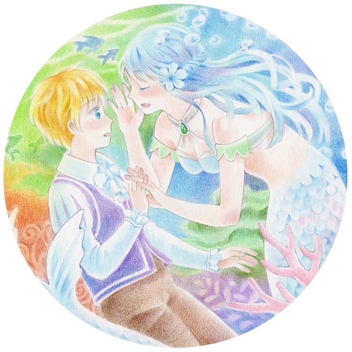 #色鉛筆イラスト 泡になっても、、、完成しましたー🐚途中に反応くださった方、ありがとうございました☺️