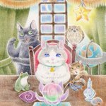 13 72 占い猫三兄妹🐱体に合ったおいしいカリカリを占ってくれます お代はヒゲ一本・・・ 途中に反応くださった方、ありがとうございました☺ #色鉛筆イラスト 22/10/08 22:28