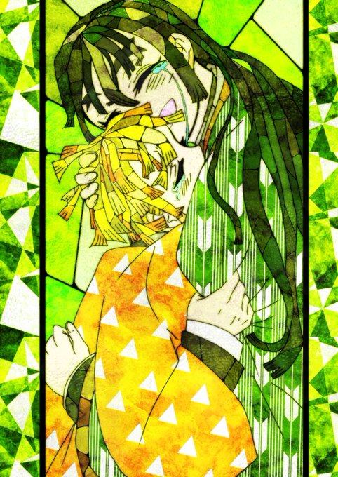 鬼滅の夢・それでもキミは愛されていたの夢主永遠目と息子善逸をステンドグラス風に描いてみた♪ #鬼滅の夢 #我妻善逸 #夢主 #夢絵 #アイビスペイント