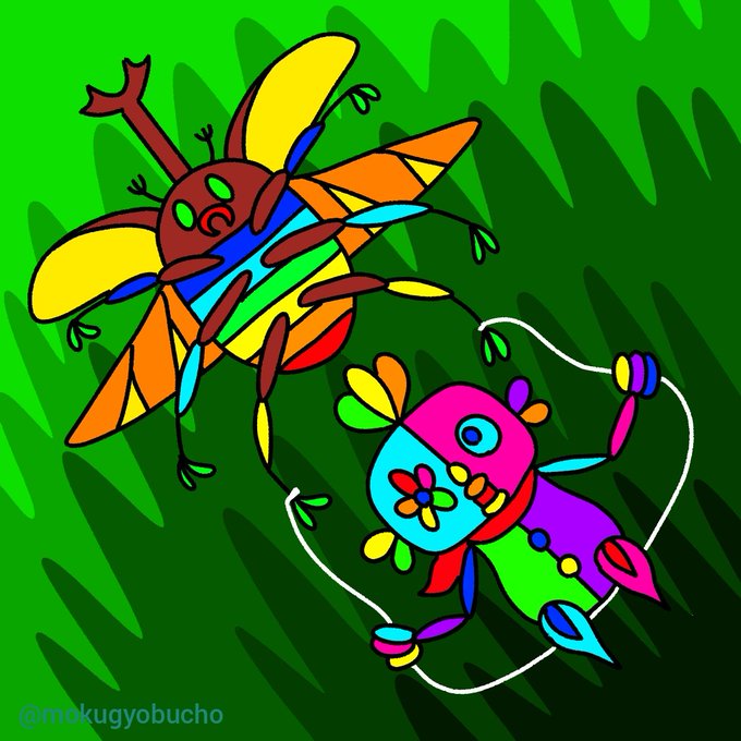 カブトムシさんが助けに来てくれたよ #カラフルピロポロズ #イラスト #illustration #絵 #art #drawing #illust #オリジナルイラスト #ゆるいイラスト #デジタルイラスト #painting #絵画 #アート #カラフル #絵描きさんと繋がりたい #カラフルな絵