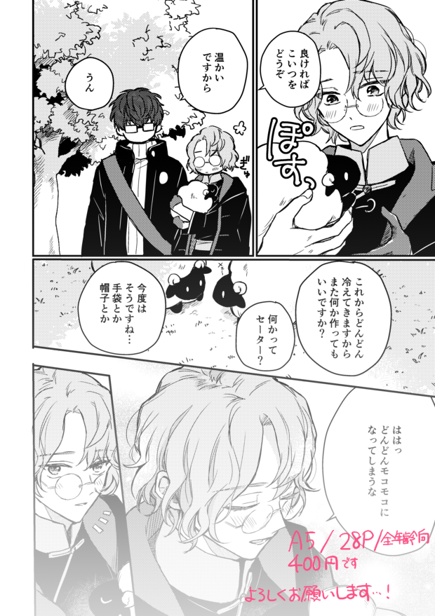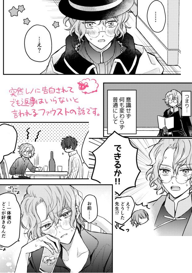 1/8のレノファウ新刊サンプルです。レノに告白されて、でも返事はいらないって言われてしまってもやもやするファの話です。🙇♀️ pixiv.net/artworks/10423… A5/28P/全年齢向/400円 よろしくお願いします…!
