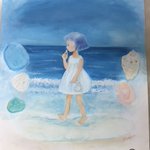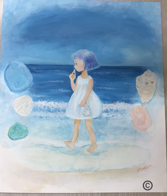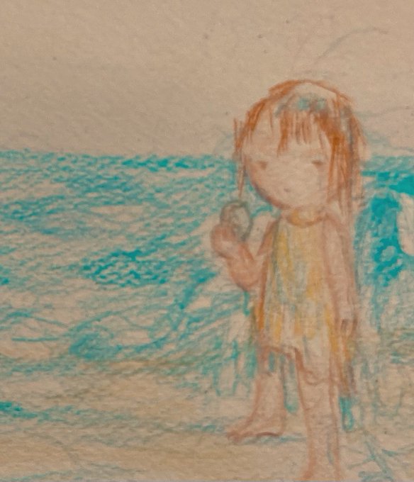 1 34 こどもたちの、あの夏の海 #童画 #色鉛筆 #夏休み #貝殻 21/06/12 20:20