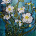 10 97 近くに住む義姉が、今年はたくさん咲いたわと、持って来てくれました😃 秋明菊と言うのだそうです😊 久しぶりにアクリルで描いてみました❗ 21/10/16 10:28