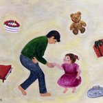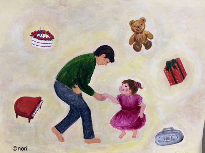 19 287 忘れない。パパとダンスしたこと。 #童画 #アクリル画 22/03/29 21:33